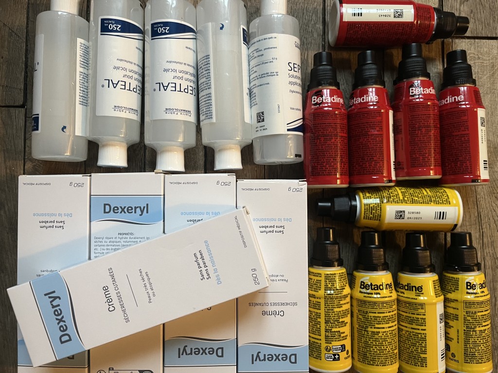 - Antiseptiques non périmés type septeal et bétadine.