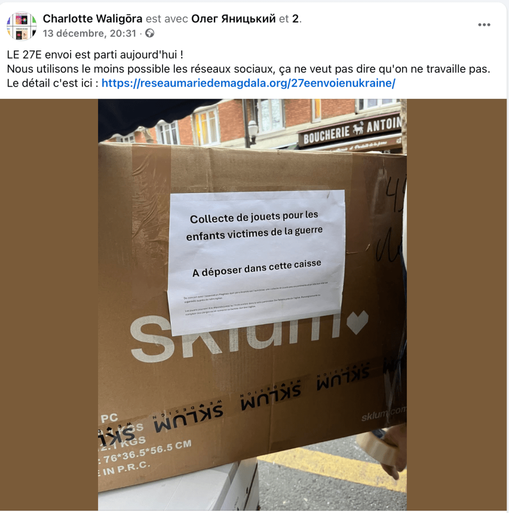 Le 27e envoi pour l’Ukraine est en cours de préparation. N’hésitez pas à nous contacter si vous avez des choses à proposer.