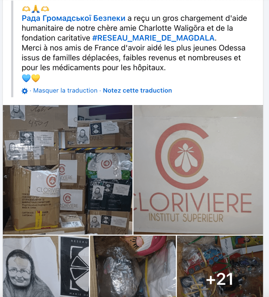 Le Réseau Marie de Magdala associe ses efforts à ceux de l’Institut Supérieur Clorivière à Paris. Nous organisons une collecte de jouets pour les enfants d’Ukraine ♥️🕊♥️ Merci aux élèves d’ESF 1 A et B pour leurs cartes, aux élèves qui ont emballé, porté, et à tous les donateurs. La collecte est partie le vendredi 10 janvier en direction de Lviv d’où elle sera acheminée vers Odessa. Elle est arrivée à Lviv le 14 janvier au matin et à Odessa le 20 janvier. Puisse ces humbles présents consoler leur petits coeurs 💖