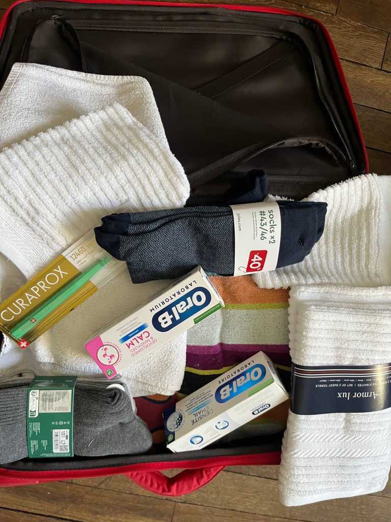 Lorsque vous devenez membres, vous recevez un de ces petits sachets que vous vous engagez à donner dans l’année, remplis d’utilitaires, à une personne de la rue ☀️