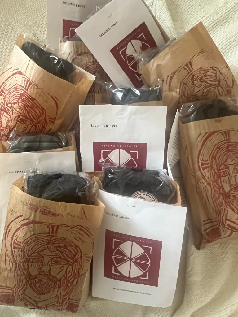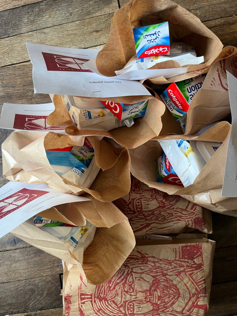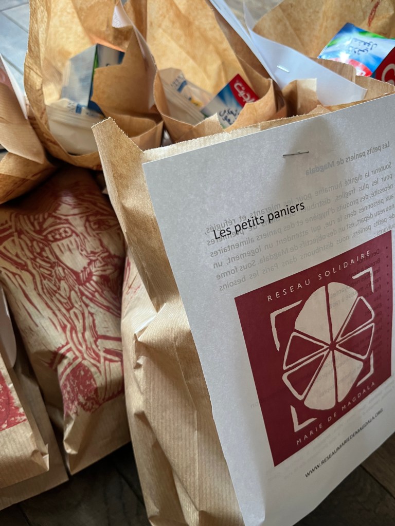 Soutenir la dignité humaine pour les migrants et réfugiés, pour les plus fragiles de nos sociétés appauvrissantes, distribuer des biens de premières nécessité, des produits d’hygiène et des paniers alimentaires aux personnes dans la rue, qui attendent un logement, un nouveau départ, est un des objectifs de Magdala. Sous forme de petits paniers, nous distribuons dans Paris et ailleurs les besoins suivants :