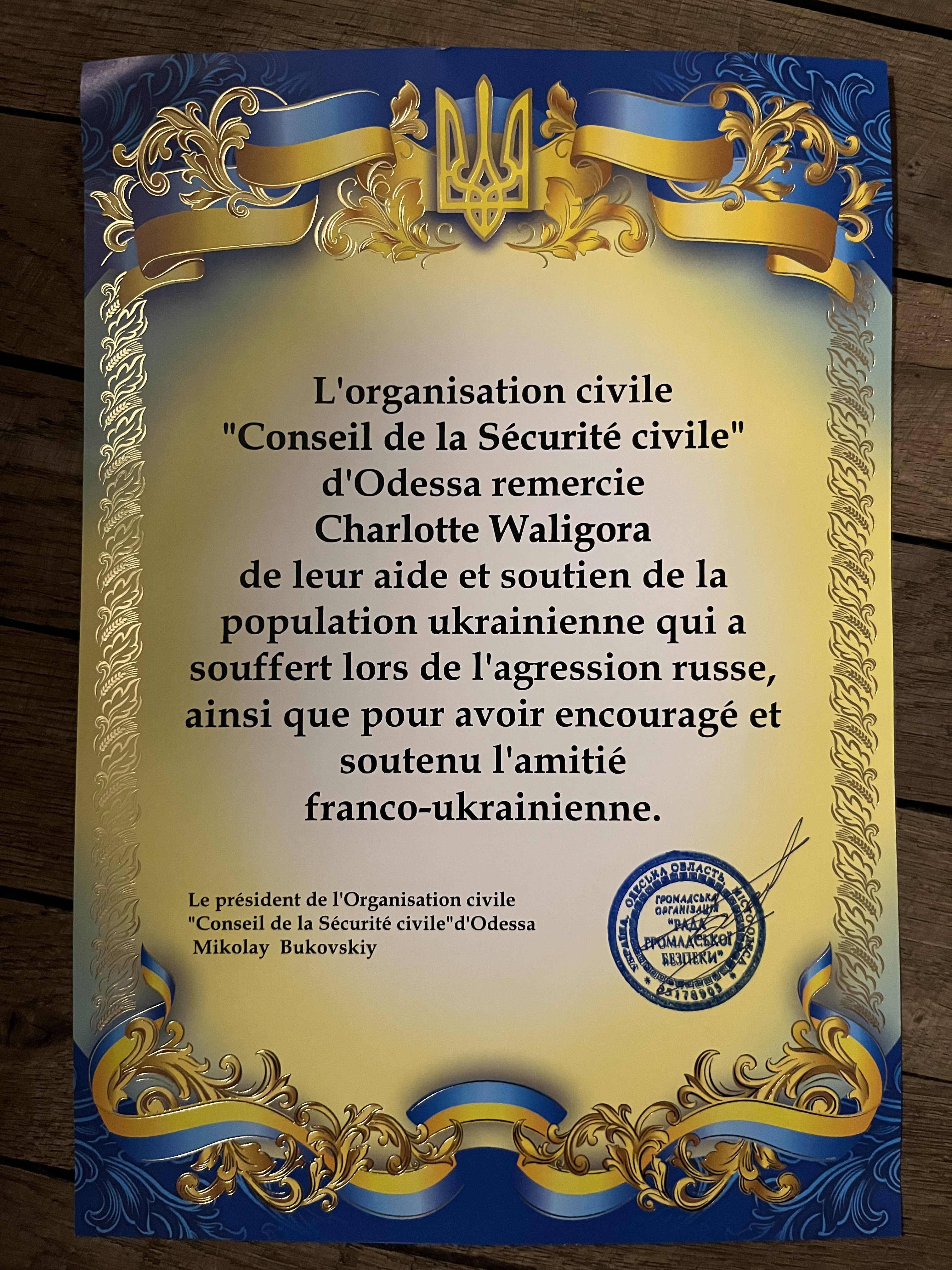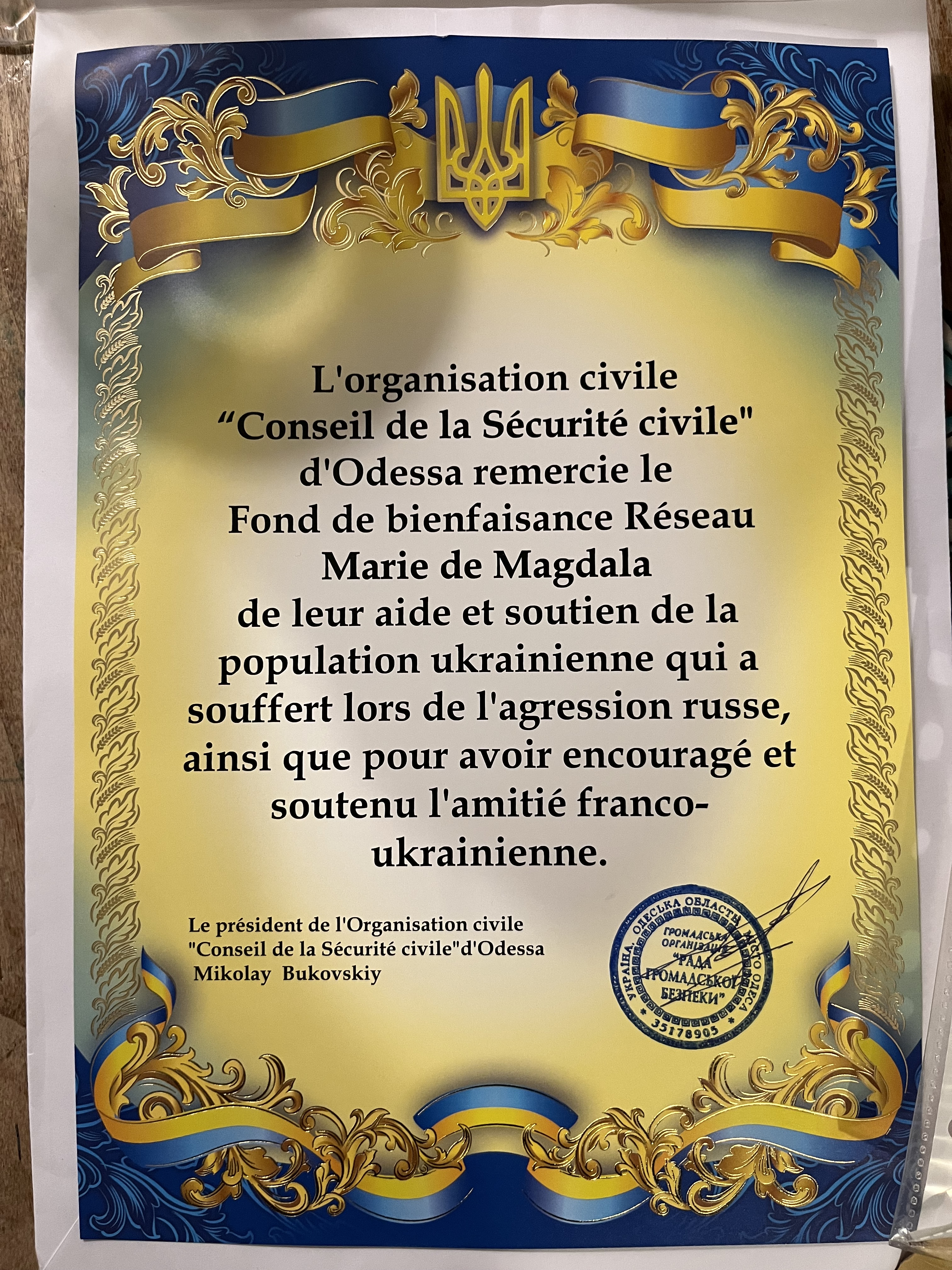 Remerciements de la ville d’Odessa
