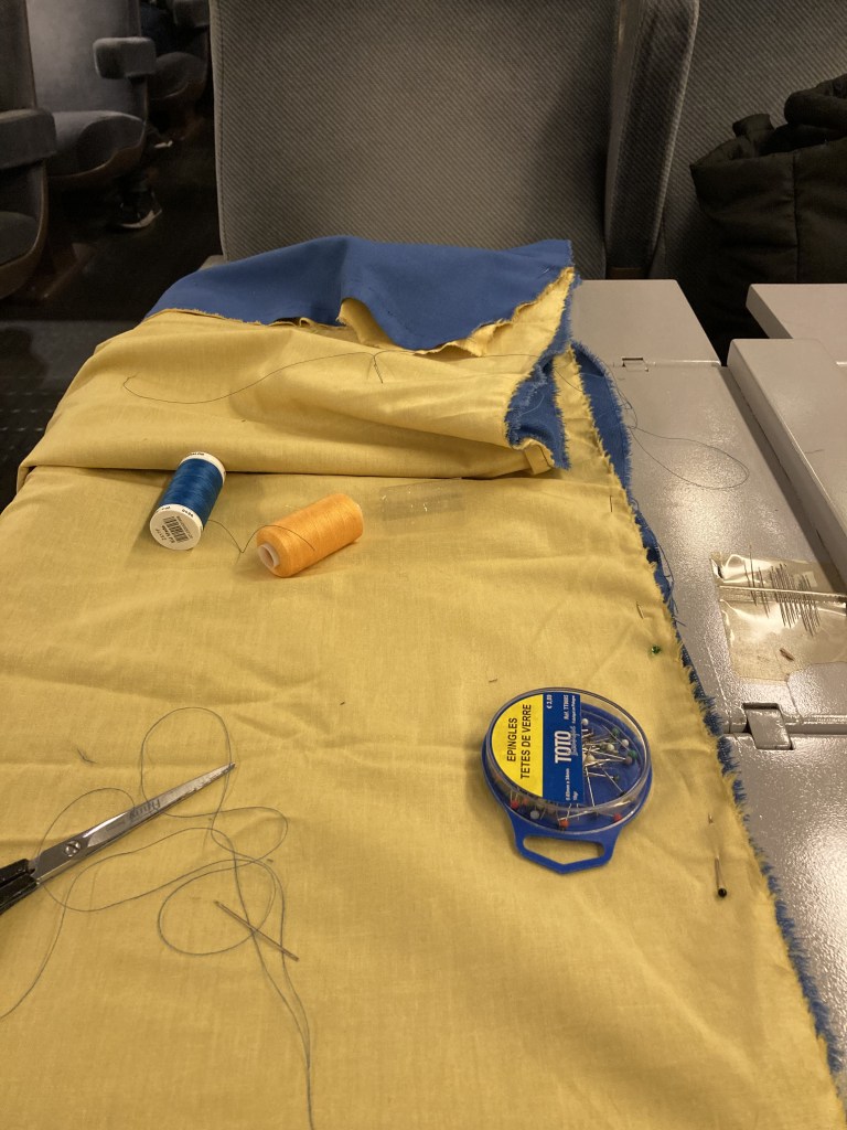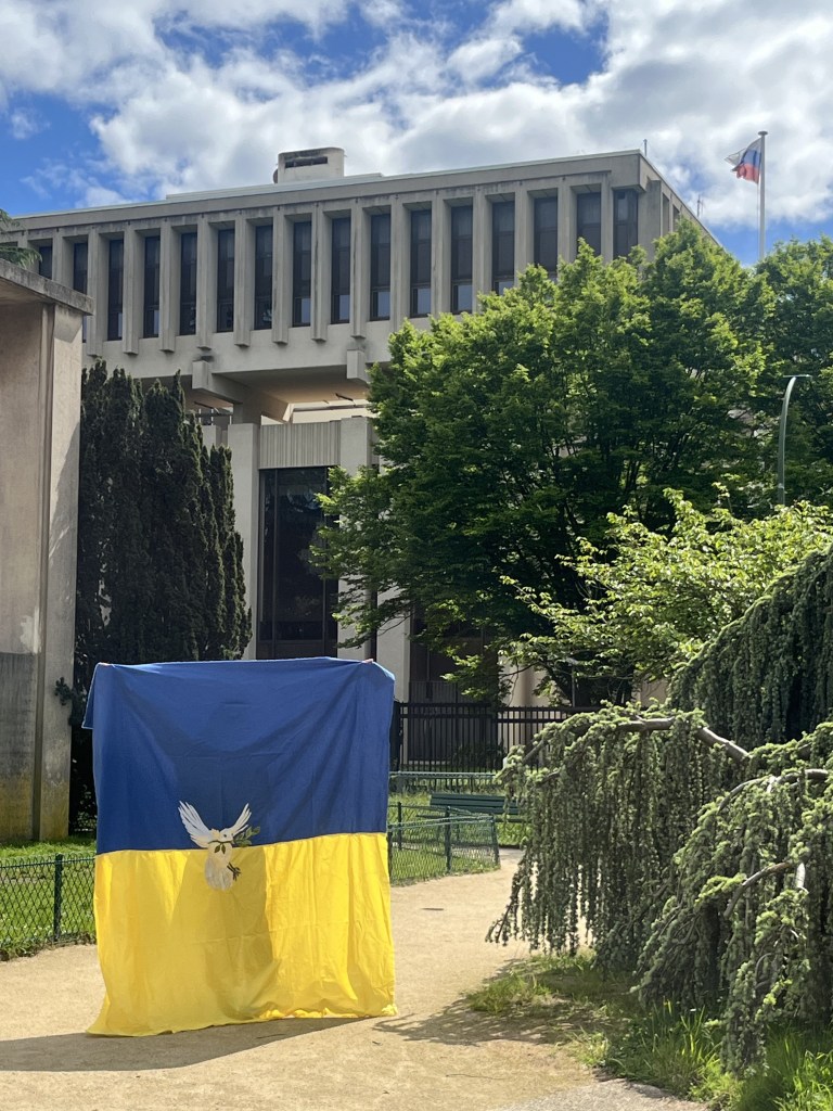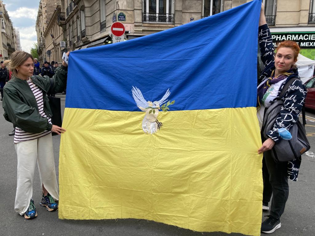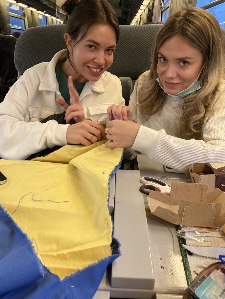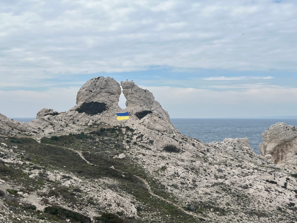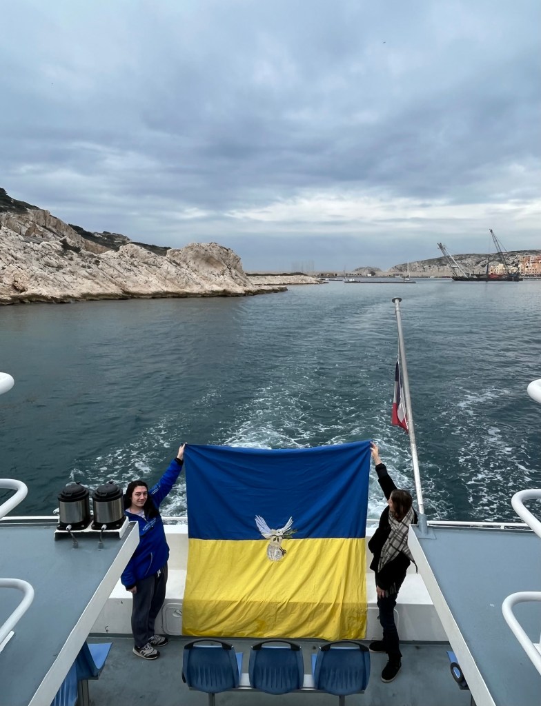 Ce drapeau a été cousu parfois avec les réfugiées accueillies par Magdala depuis mars 2022 et incarne l’espoir d’un arrêt de l’agression militaire russe en Ukraine, le retour de la paix sur le sol ukrainien et le droit, la liberté des peuples à décider de leur destin.